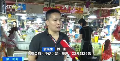 摊主 蒙先生:刻下中虾是每斤22元至25元,畴昔是每斤25元至28元。