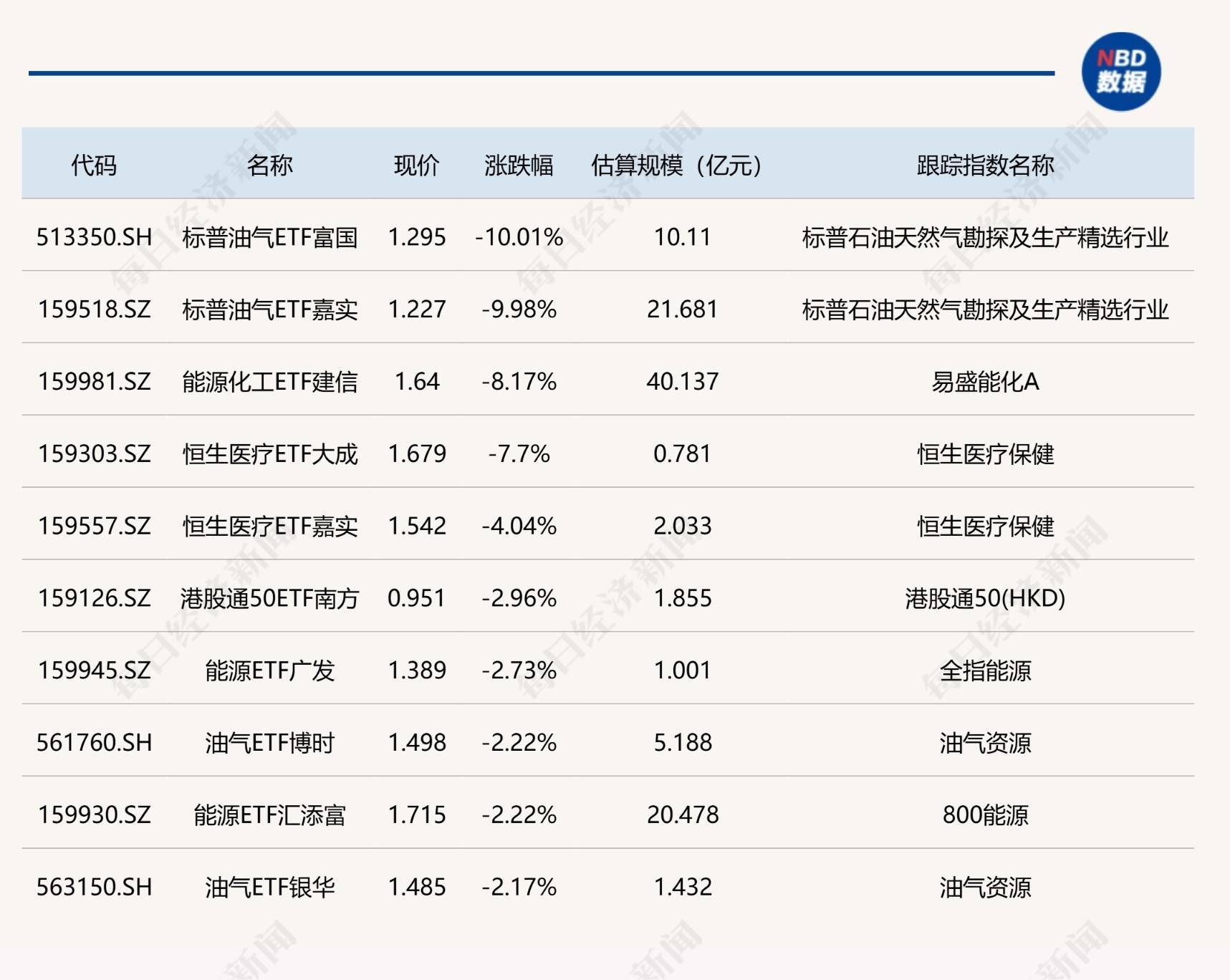下降方面,标普油气ETF跌停。