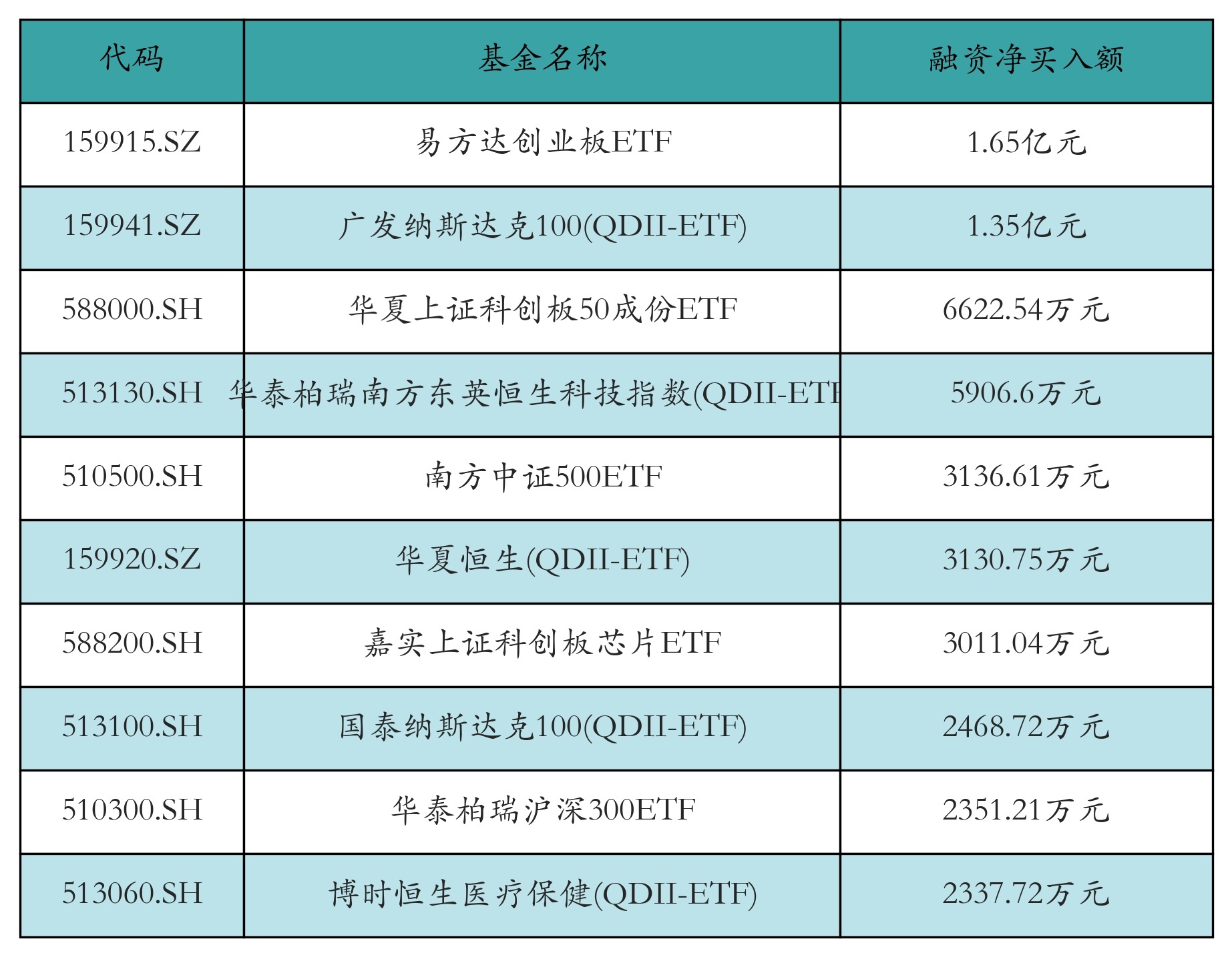 1月13日ETF融资净买入额前三位分离为:易方达创业板ETF(1.65亿元)、广发纳斯达克100(QDII-ETF)(1.35亿元)和中原上证科创板50成份ETF(6622.54万元),前10具体见下表: